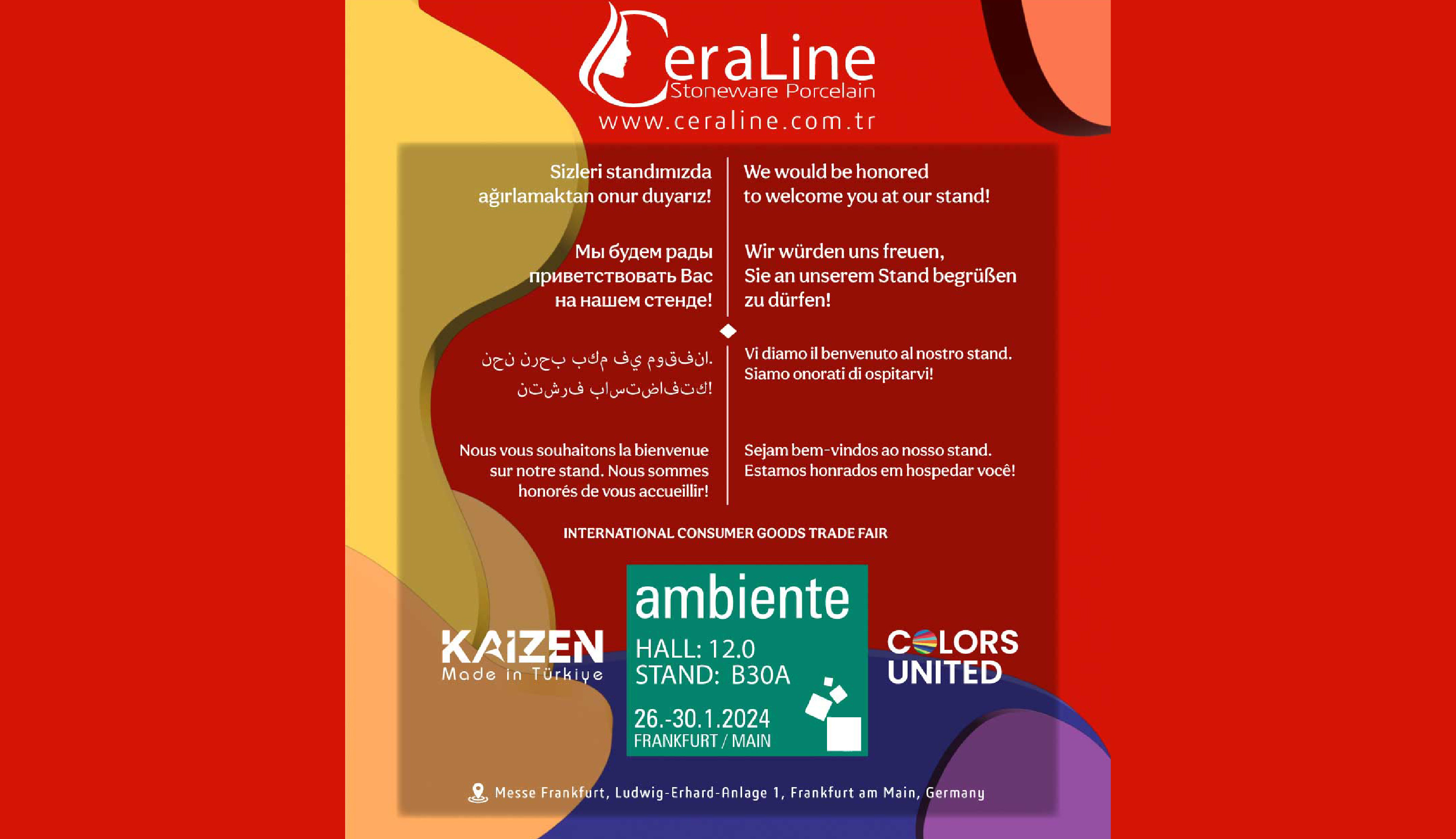 Our company participated in the Ambiente International Home and Kitchenware Fair, held in Frankfurt, Germany, between January 26–30, 2024. This prestigious event brought together industry professionals from around the world, giving us the opportunity to present our new collection and establish global business connections. We sincerely thank all visitors for their great interest and valuable meetings at our booth. We are proud to have showcased our products where creativity, quality, and design come together at Ambiente 2024.